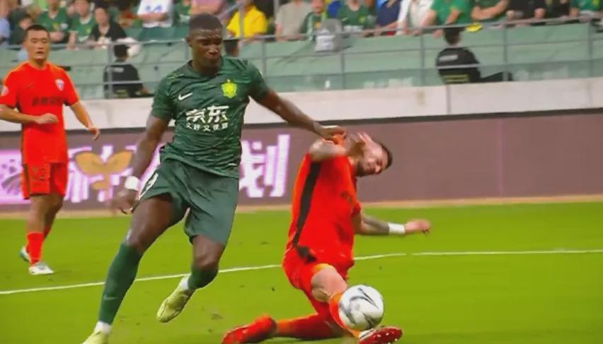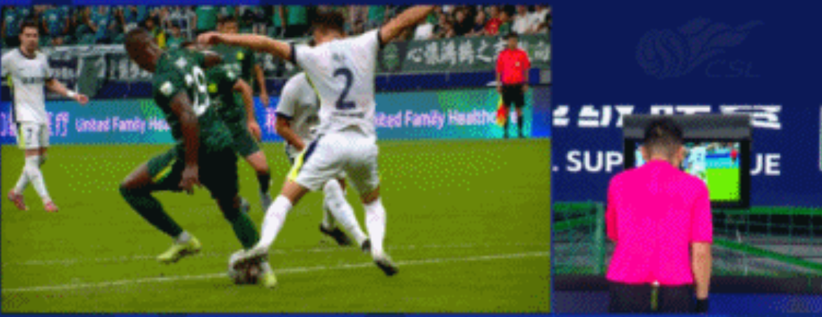 但是担任VAR的万涛并不认可主裁判的判罚。VAR介入后,穆禹辰亲自跑到场边回看慢镜头,最终改判为点球。法比奥主罚命中,国安队开局1-0取得梦幻开局。